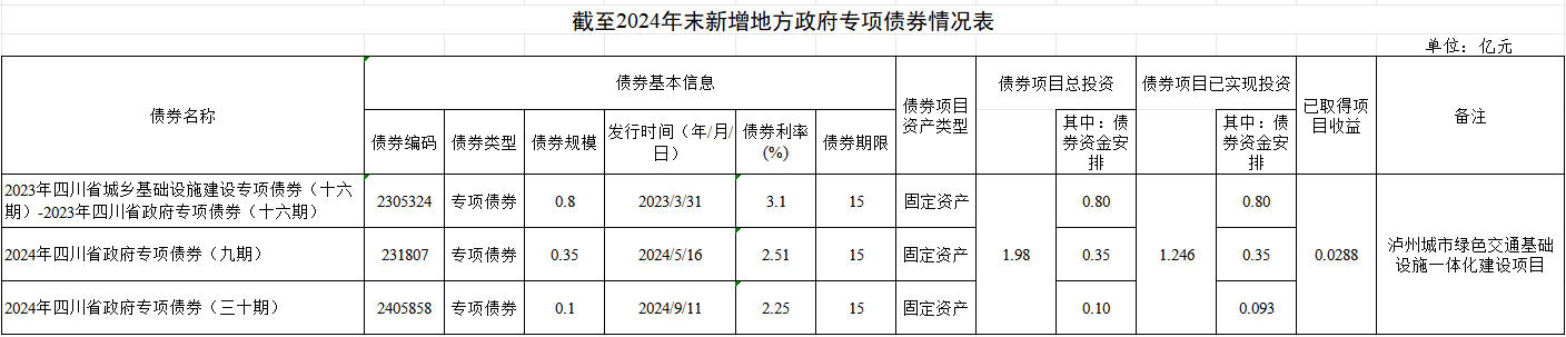 瀘州市公共交通集團有限公司截止2024年末新增地方政府專項債券存續(xù)期信息公開